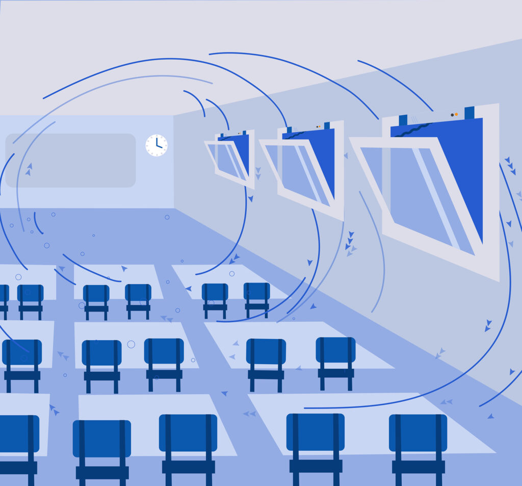 Messungen zeigen, dass die Luftqualität in Klassenräumen mit unserem System um bis zu 40% besser ist als in herkömmlich belüfteten Räumen.